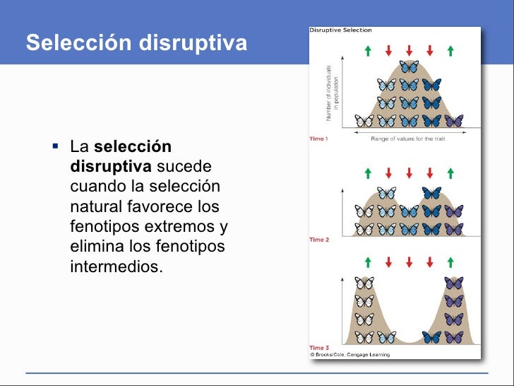 En nuestro ejemplo para este tipo de selección obtendremos que desaparecen los individuos intermedios y aquellos de los extremos o poco comunes surgen más individuos para dejar una mayor descendencia fértil.